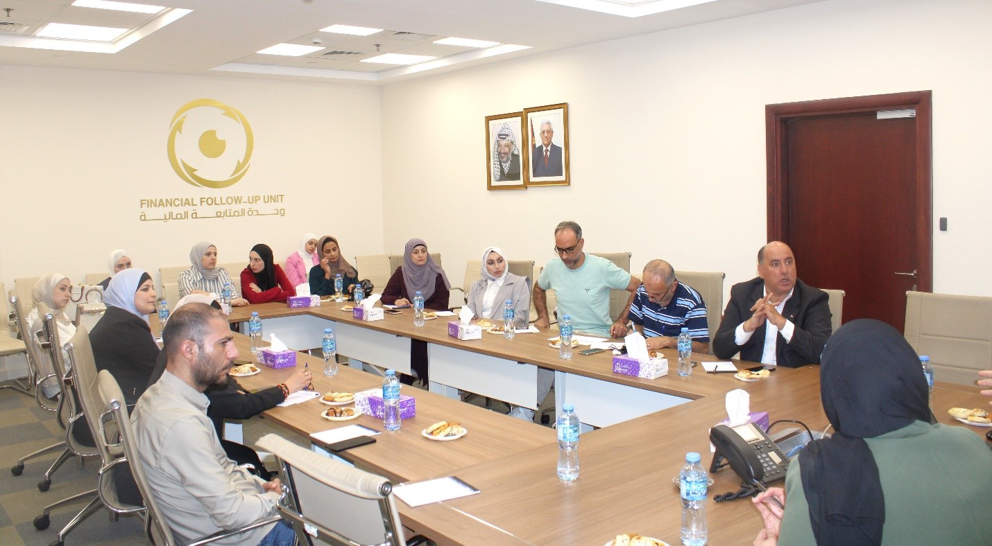 نظّمت وحدة المتابعة المالية بالتعاون مع وزارة العدل ورشة عمل متخصصة حول تنفيذ قرارات مجلس الأمن وآلية التسجيل على الموقع الالكتروني للجنة تنفيذ قرارات مجلس الأمن في فلسطين، حيث شارك في الورشة المدير العام للإدارة العامة للسجل العدلي الوطني في وزارة العدل السيد يسري عليوي ورئيس وحدة شؤون القضاء د. توفيق حرز الله، بالإضافة الى ممثلين عن وزارة العدل في جميع المحافظات الفلسطينية.
